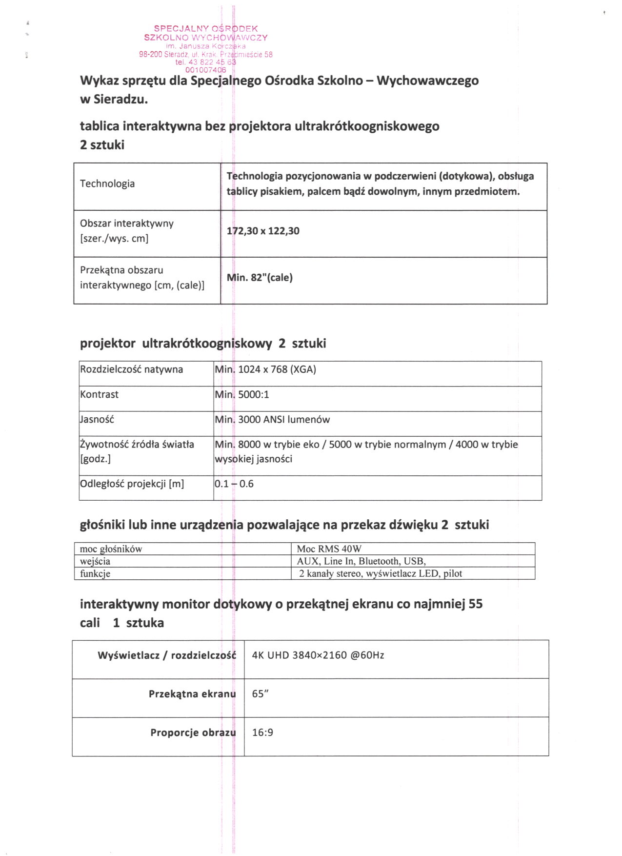 1. Nazwa i adres zamawiającego: Specjalny Ośrodek Szkolno-Wychowawczy w Sieradzu, ul. Krakowskie Przedmieście 58, 98-200 Sieradz