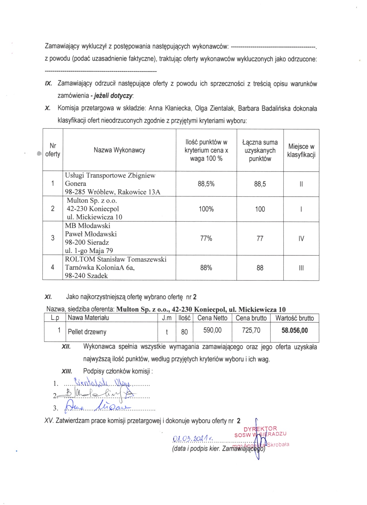 Protokół z zapytania ofertowego dostawy ekologicznego brykietu